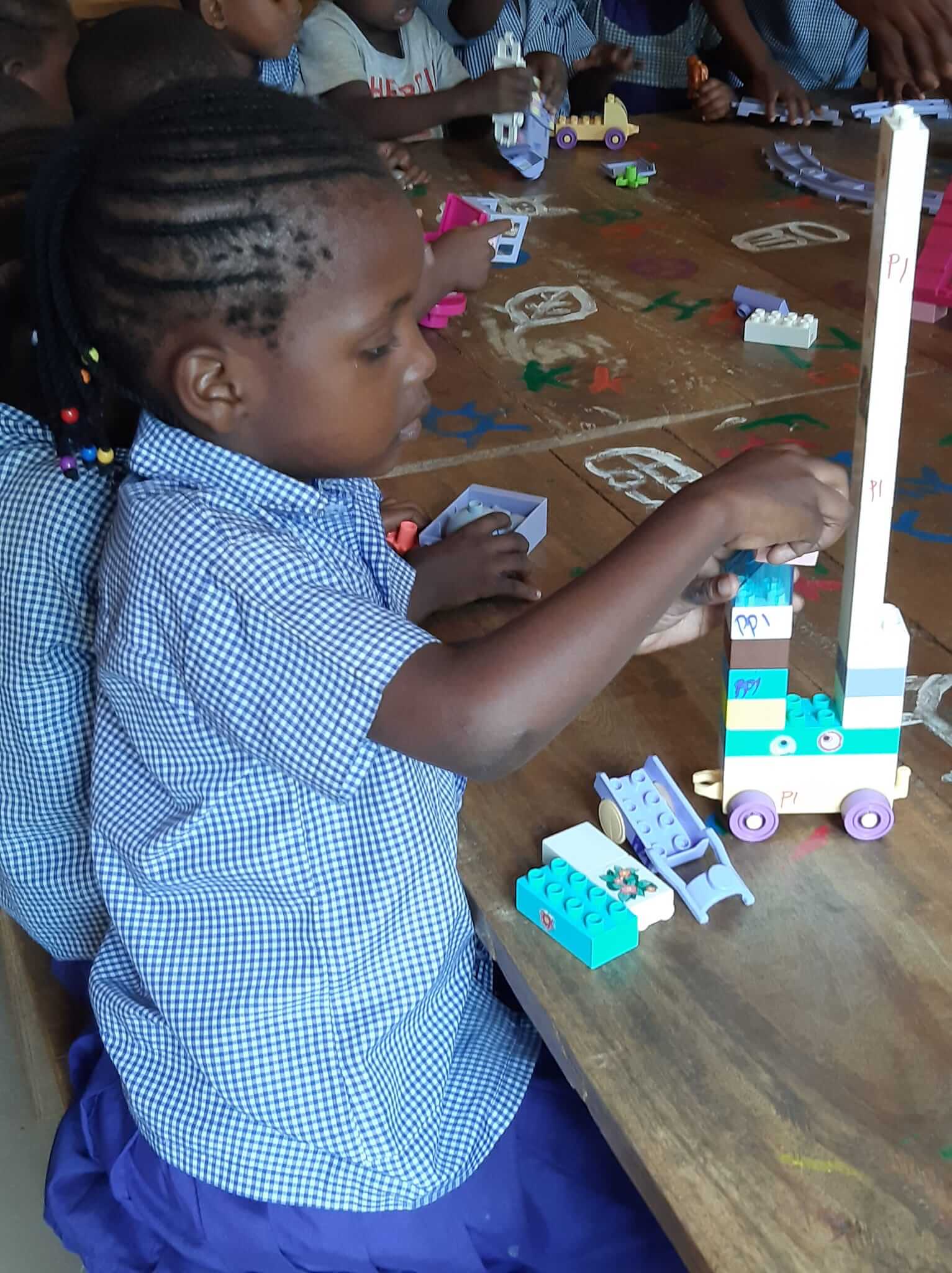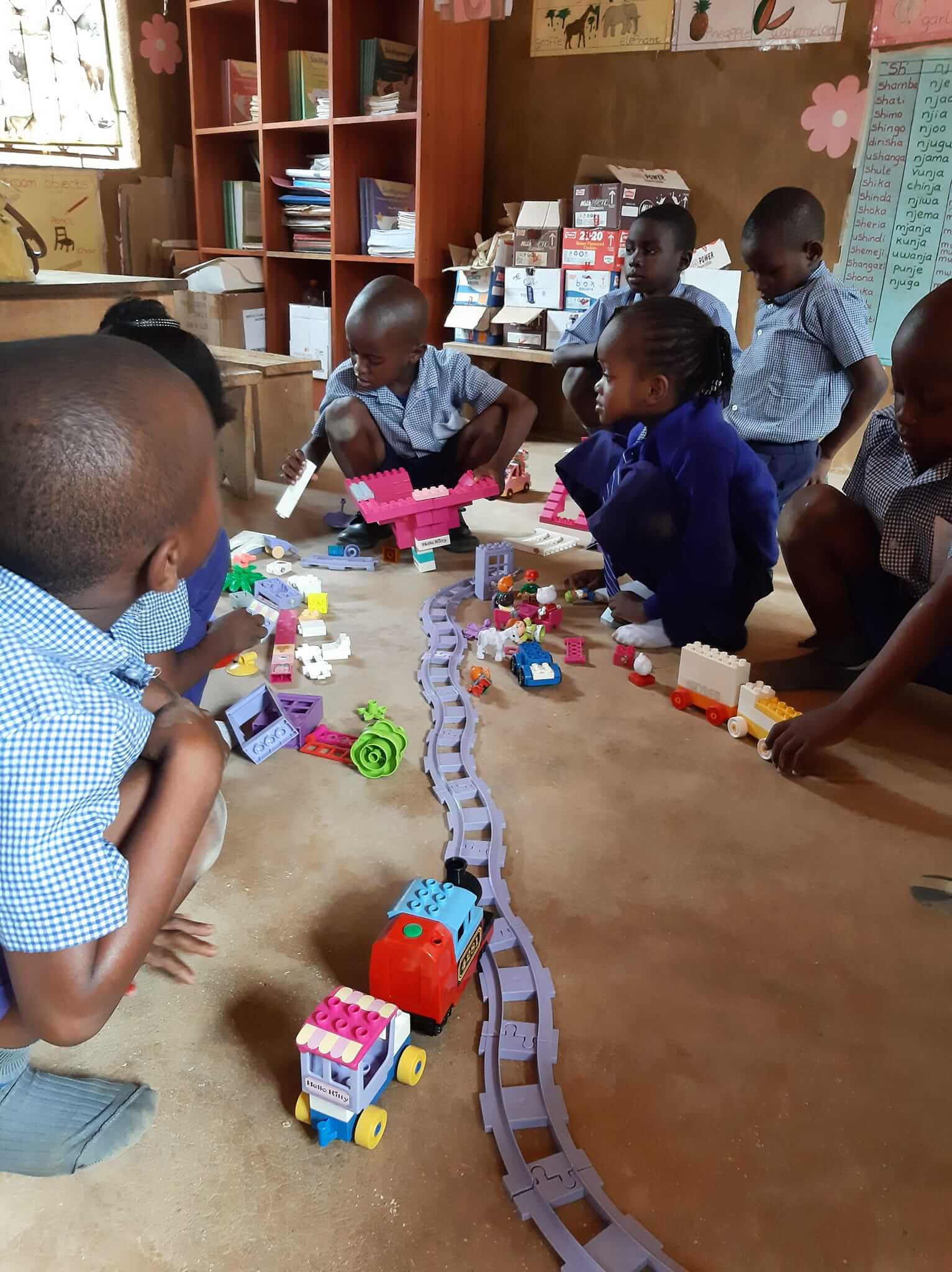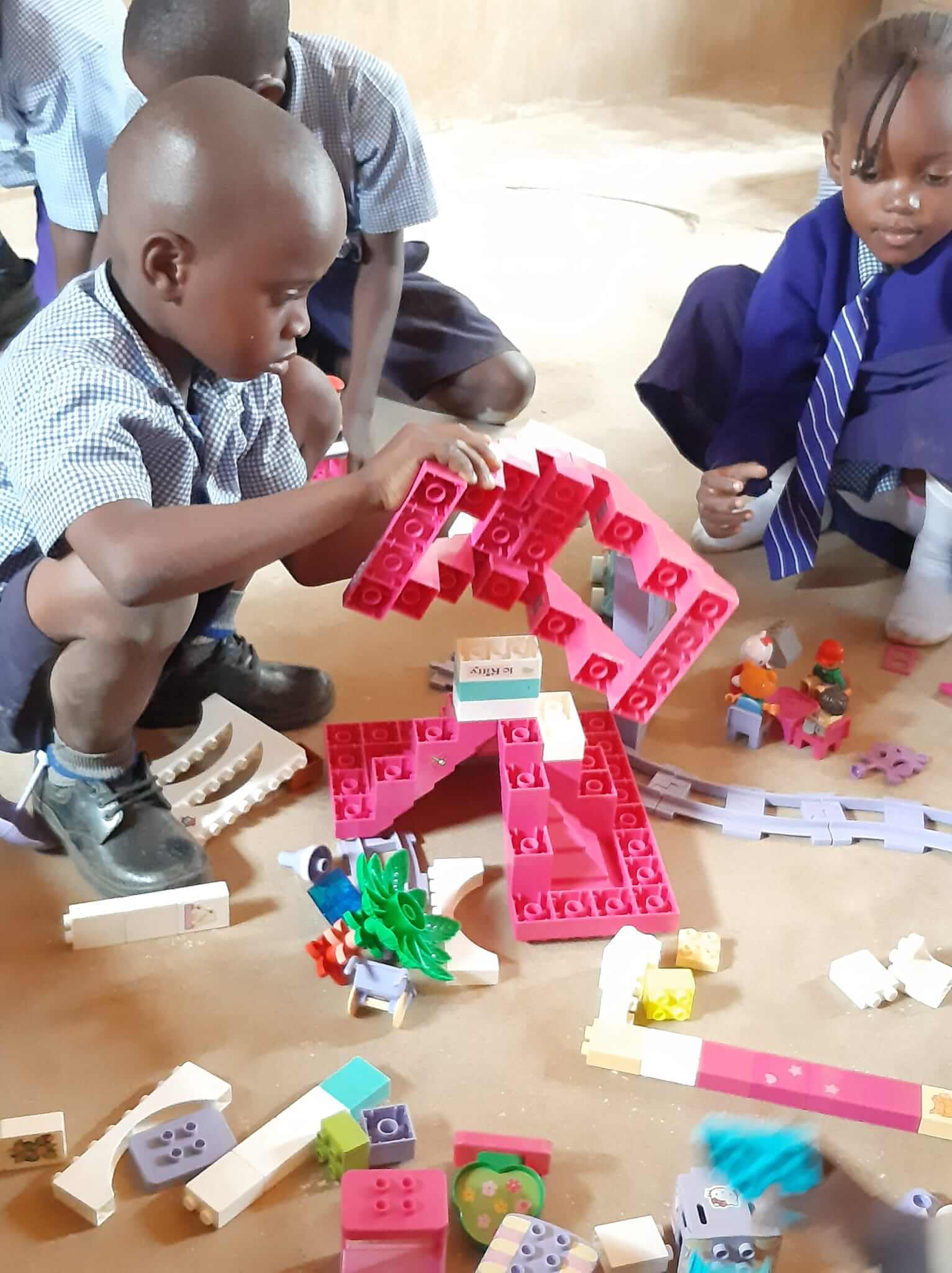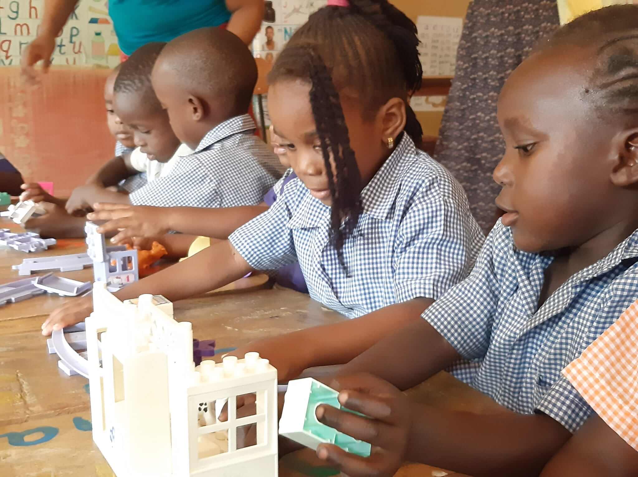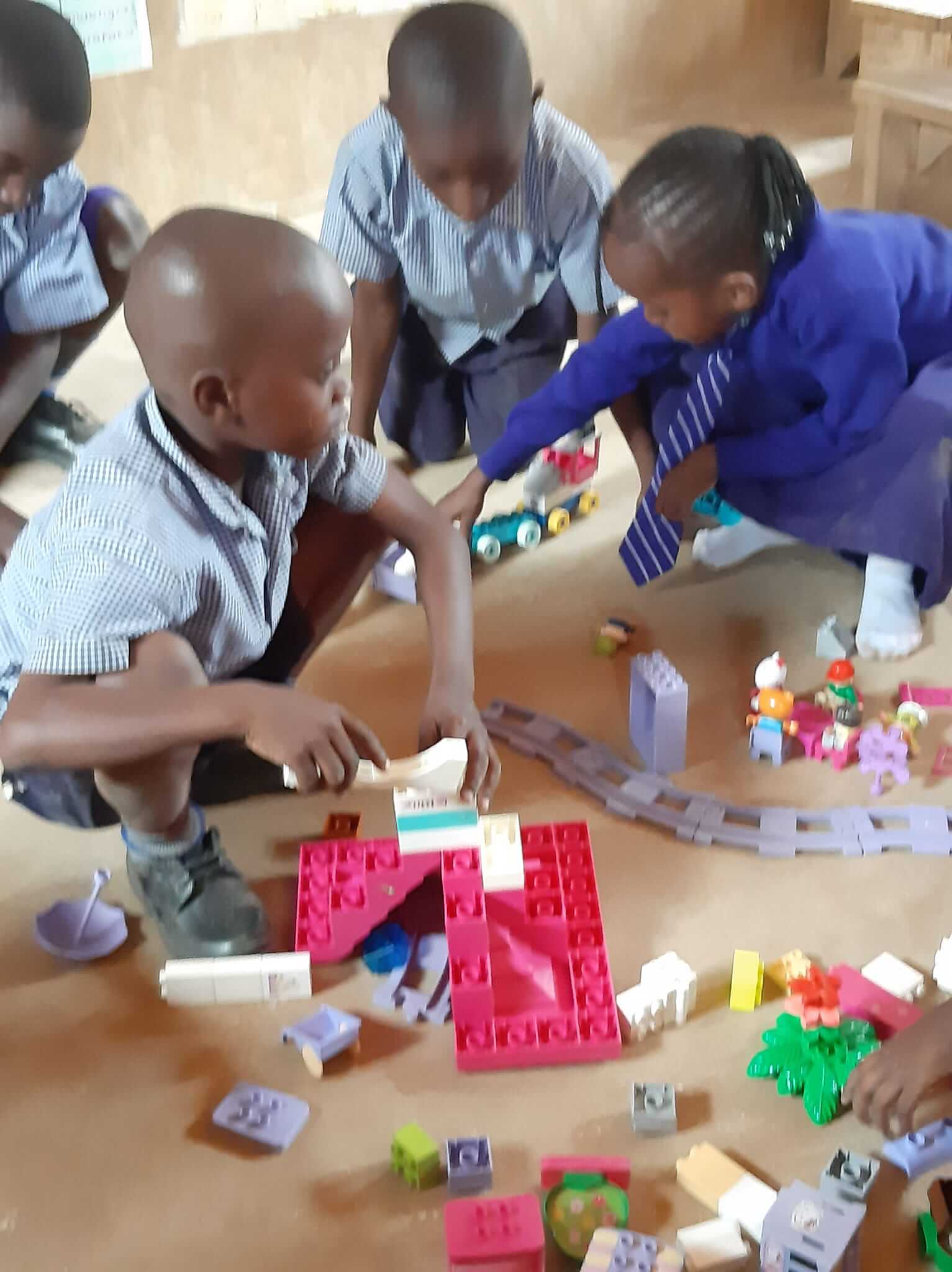 Wat een feest voor de kleuters, we namen dertig kilo Duplo voor ze mee. Het speelplezier spatte ervan af! Door deze dozen hadden we onze binnenlandse vlucht gemist, maar bij het zien van deze blije gezichten was het dat wel waard geweest.