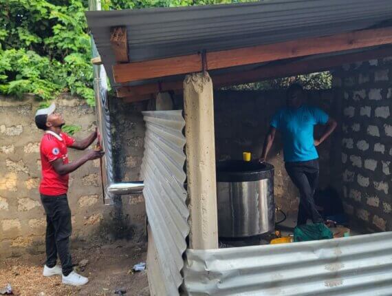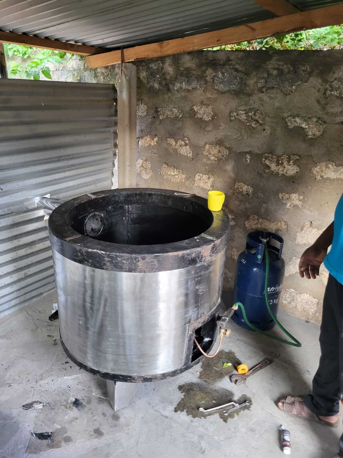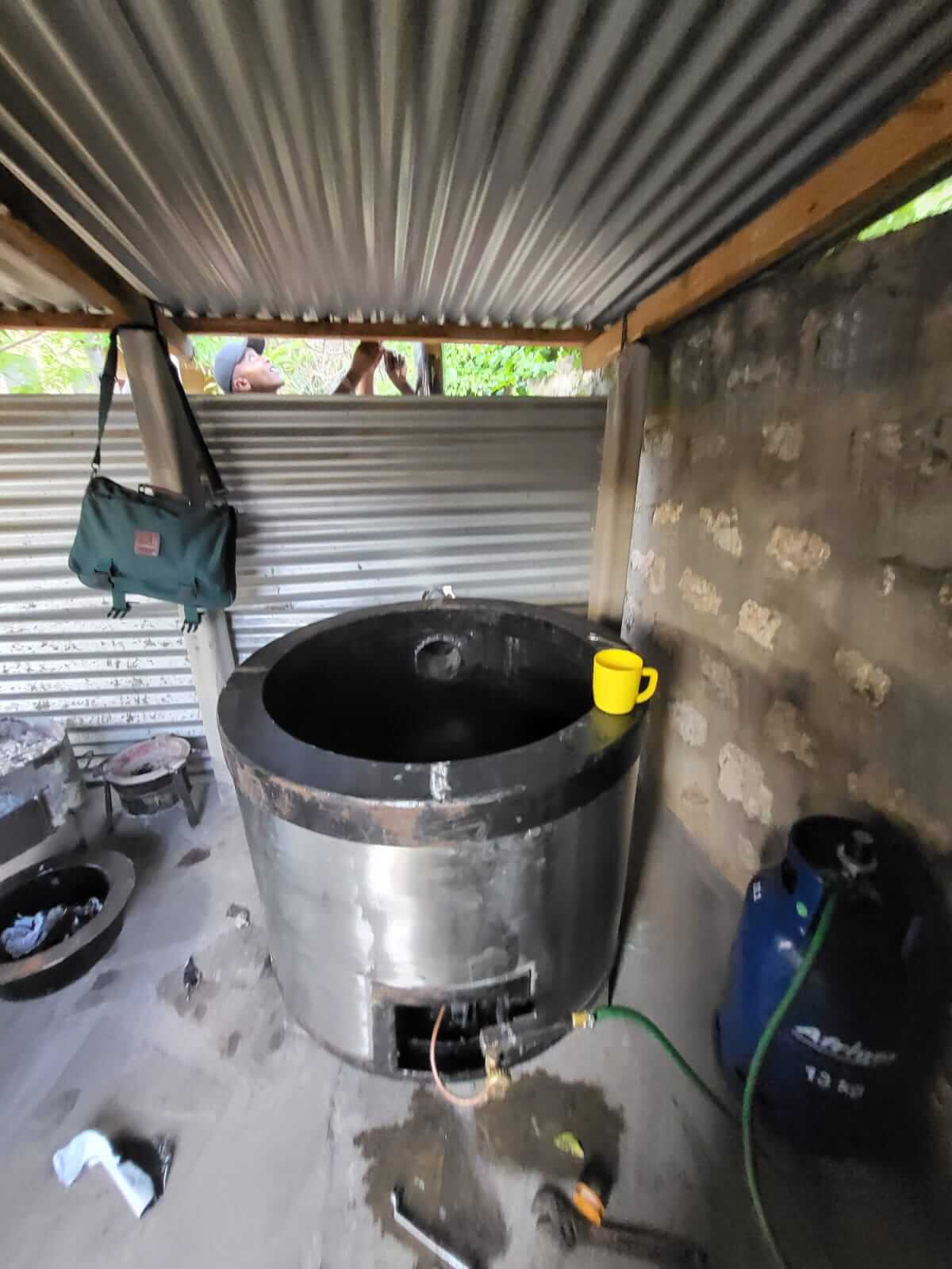 Yes….hij is geleverd! De grote ‘pan’ om rijst of ugali in klaar te maken. Niet meer roeren in overvolle te kleine pannen op houtskool vuurtjes, maar nu op gas. Een stuk veiliger!