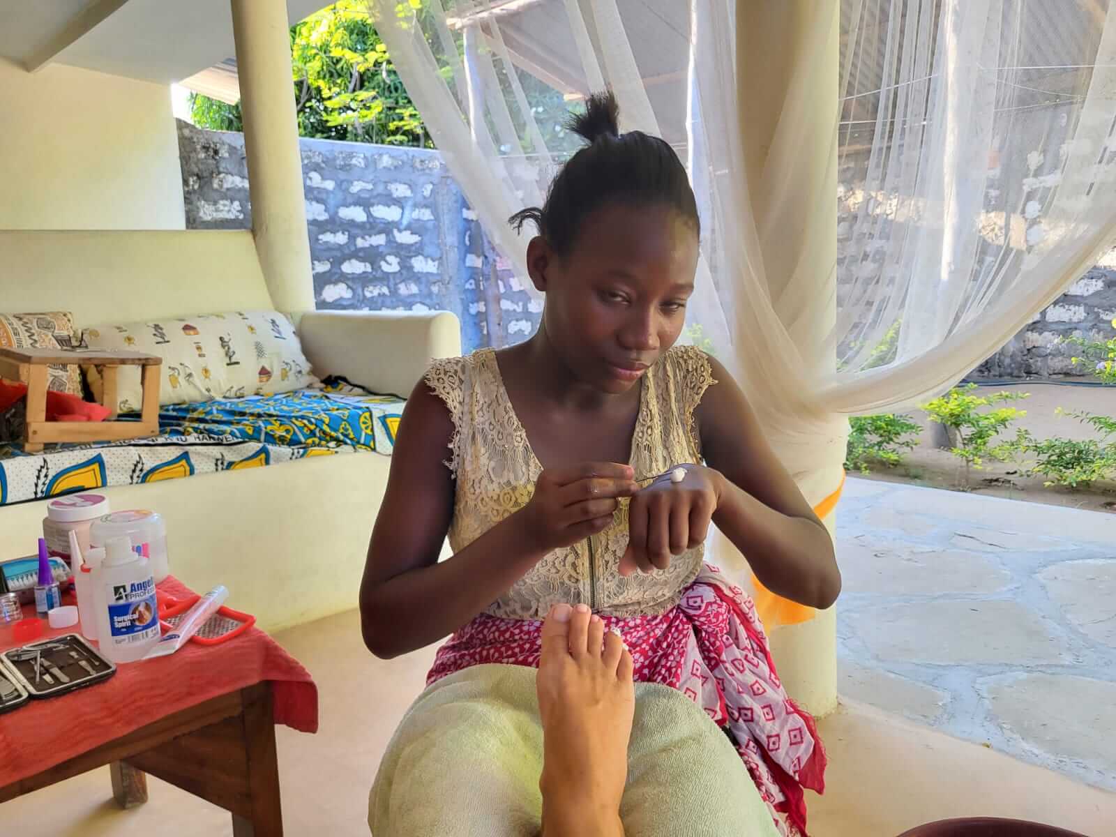 Hoe leuk is het als een van de leerlingen, die de opleiding doet tot schoonheidsspecialiste, in haar vakantie even een bezoekje brengt aan onze basisschool In Mtangani.
