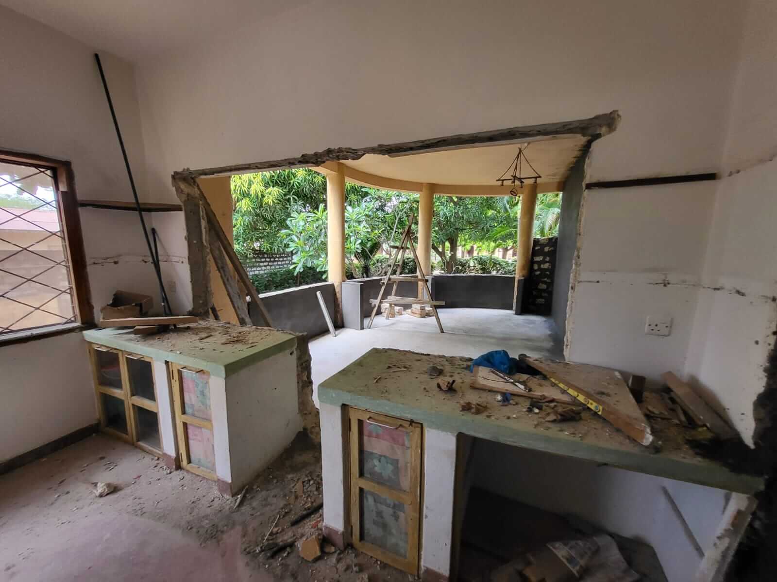 Maar nu kunnen we wel hard door werken aan de uitbreiding van de keuken en de bibliotheek.
