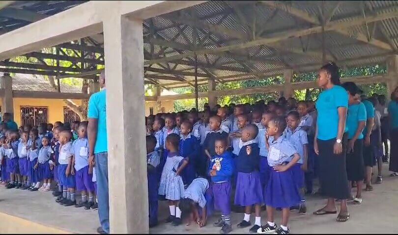 Alle kinderen keurig op een rij van klein naar groot….235 kinderen die bij ons heel goed onderwijs krijgen. We hebben er hard voor gewerkt, maar hier staat echt wat hoor! Kippenvel;-)